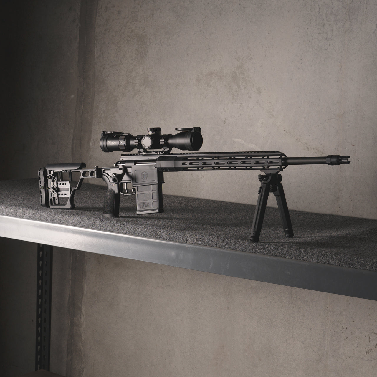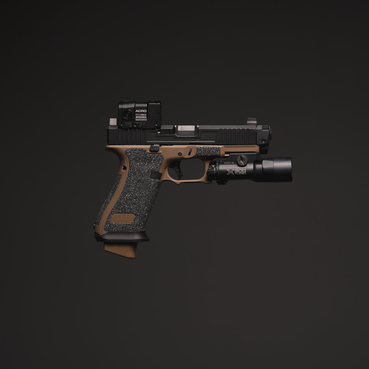 Our trigger shoe is made out of 7075 Aluminum and Type 3 hard coat anodized.